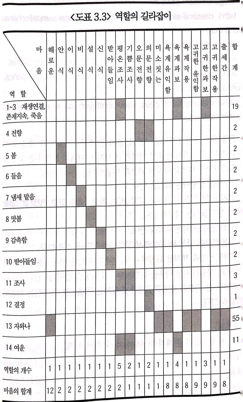 이 세 가지 역할을 하는 마음은 모두 19가지가 있다.
